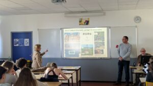 Photo : Arnaud Lamoureux, vigneron aux Riceys, et Monique McColl, ancienne directrice de l’Ordre des coteaux de Champagne, sont intervenus devant 30 lycéens baralbins. Après